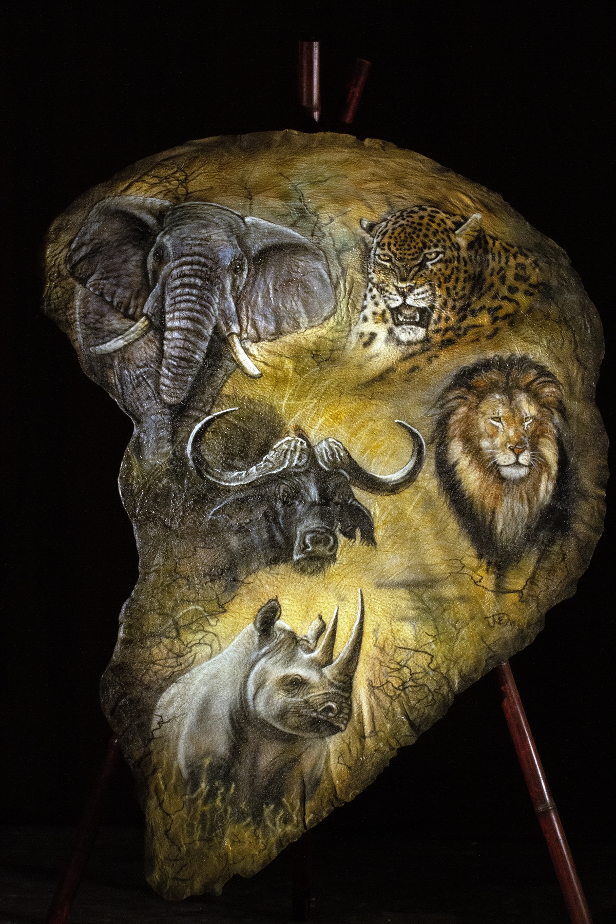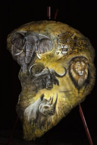 Elephant, Lion, Leopard, Rhino, Cape buffalo Original Art On Elephant Ear